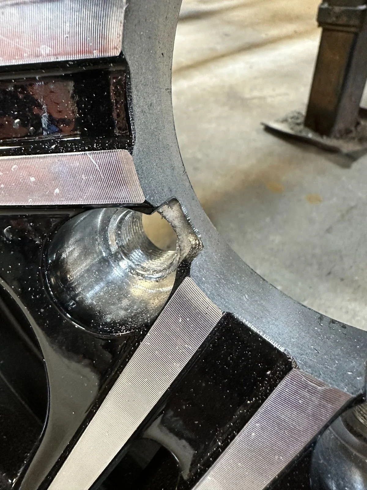 Studs not torqued properly on an aluminum wheel. (Photo Credit: The Trailer Guy)
